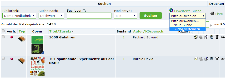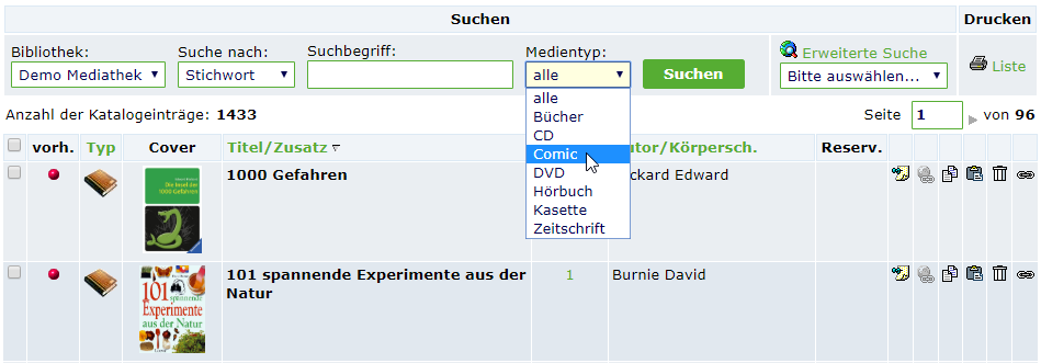 Um ein Medium zu löschen, müssen alle erfassten Exemplare gelöscht werden.